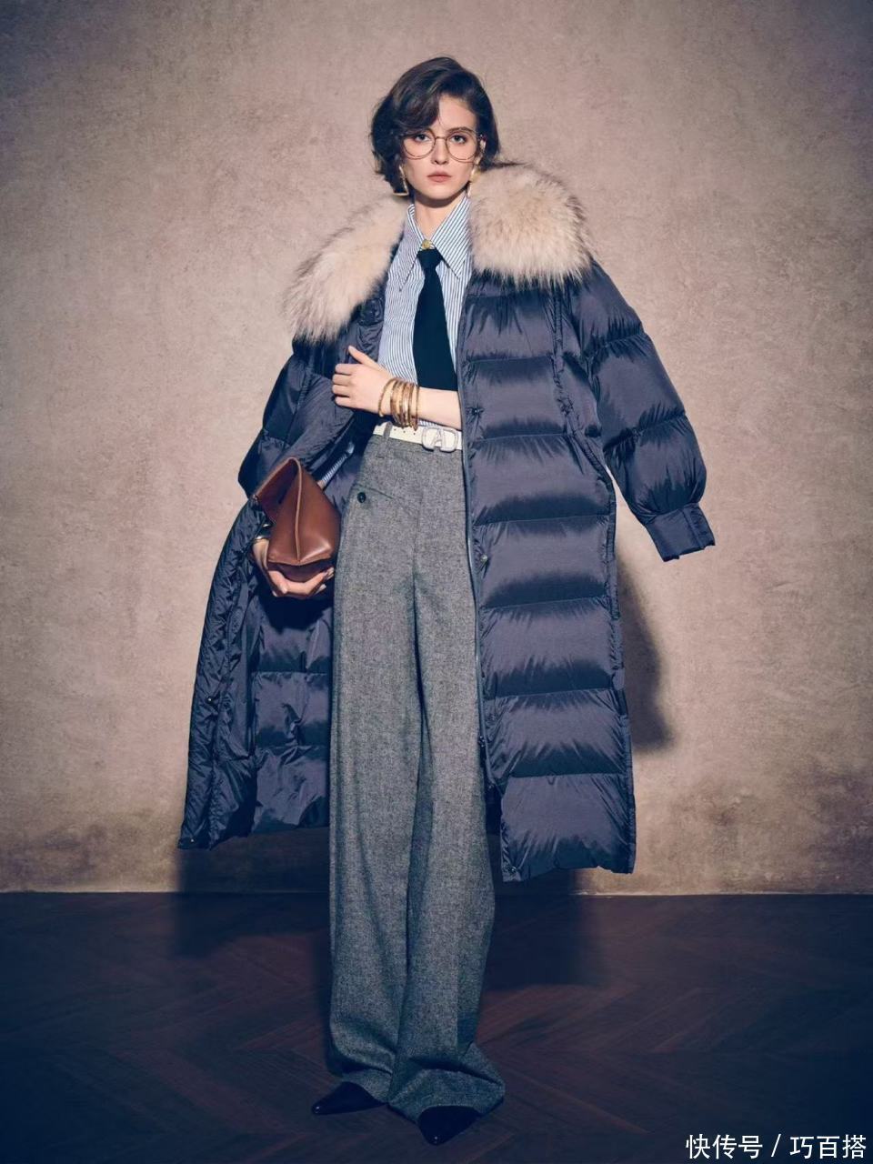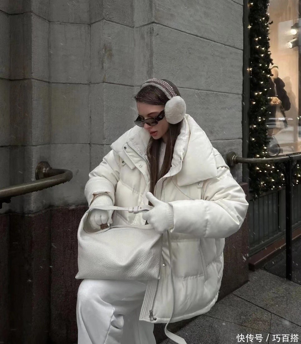 气质大翻领羽绒服既有修身款式又有宽松浴袍款式,身材没有优势,选择后者更轻松自在,内搭同为宽松款式,松弛又慵懒。